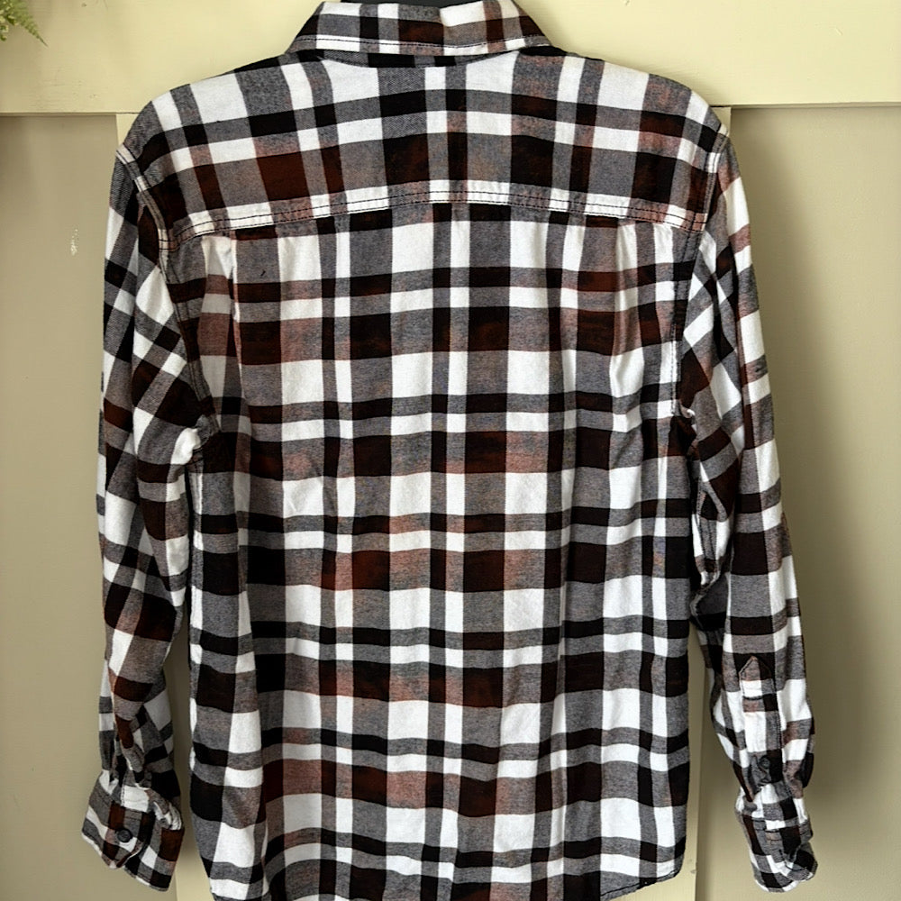 Hand Bleach Dyed White & Black Plaid Flannel Relaxed Fit Soft & Warm
