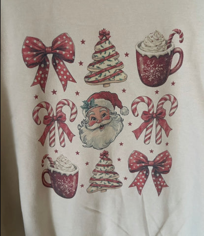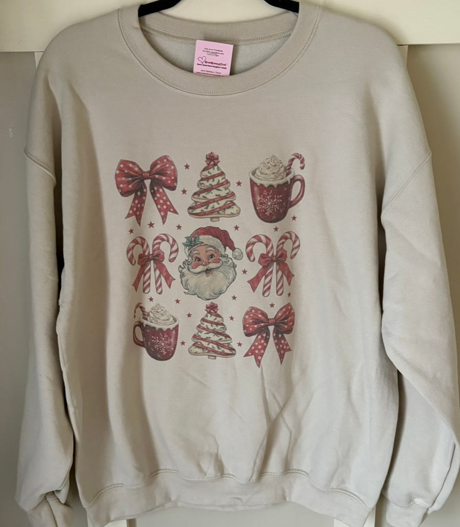Holiday Bows and Cocoa Santa Sublimated Sweatshirt – Vintage Cheer Meets Cozy Comfort