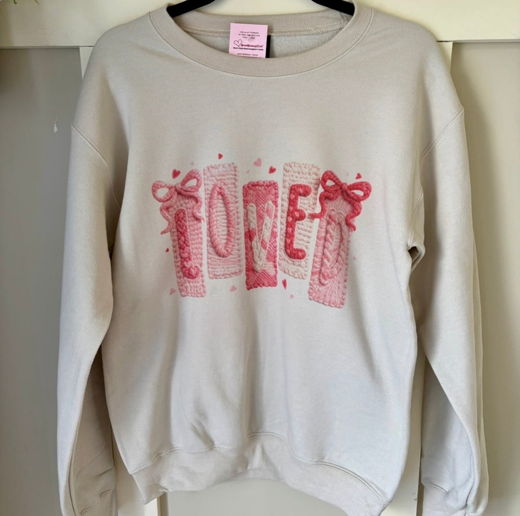 • "Loved" Valentine Faux Knit Tiny Hearts and Bows