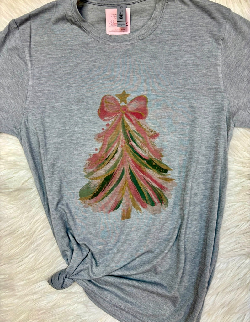 Christmas Tree w/ Pink Bow Graphic T-Shirt