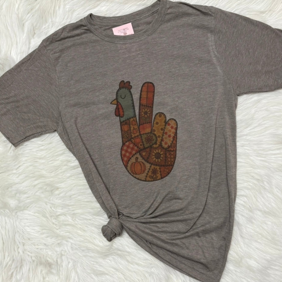 Patchwork Retro Peace Turkey Thanksgiving Graphic T-Shirt
